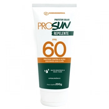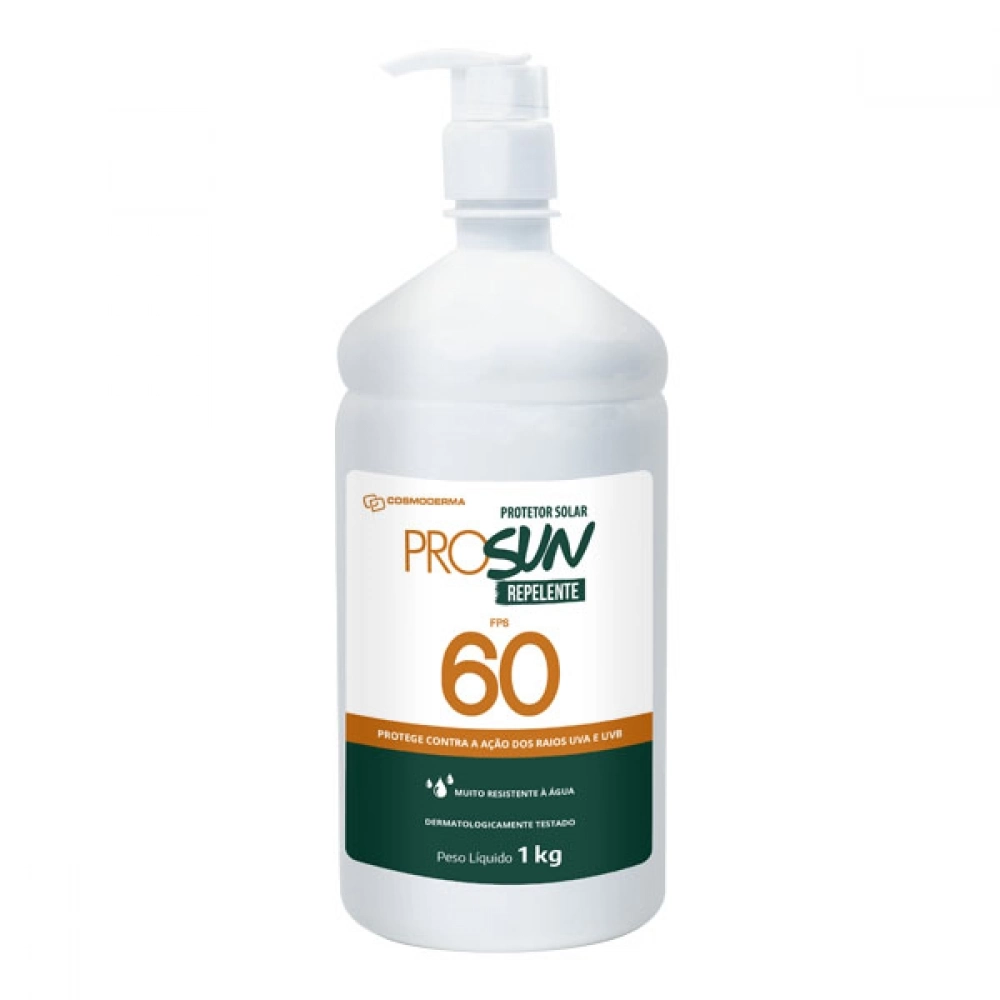 ProSun FPS 60 com Repelente protege sua pele contra os efeitos nocivos dos raios UVB, 60 vezes mais do que sem sua aplicação. O uso desse produto ajuda a prevenir o envelhecimento precoce da pele causado pela exposição excessiva aos raios solares, inibindo a formação de radicais livres. É indicado para pessoas de pele muito sensível a queimadura solar, que sempre se queimam e nunca se bronzeiam. Oferece muito alta proteção contra queimaduras solares.