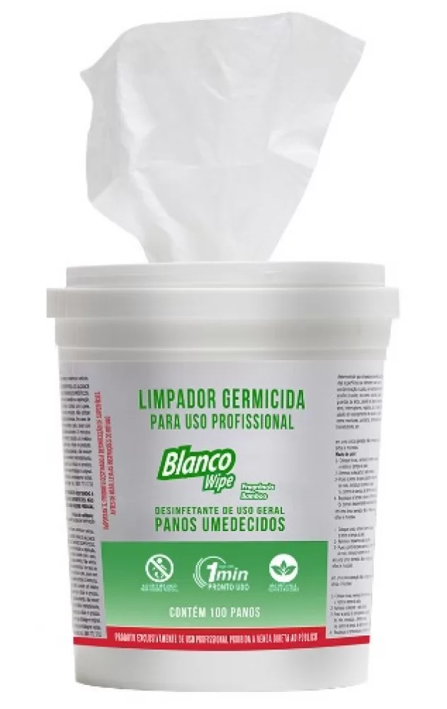 Blanco Wipe elimina os germes, interrompendo a cadeia de transmissão, além de promover a limpeza, tornando as superfícies mais seguras. Disponível nas opções Bamboo e Inodoro.O uso dos panos individuais descartáveis é mais higiênico do que os panos tradicionais de limpeza. Além disso, são mais práticos, pois estão sempre à disposição dos usuários.Os panos Blanco Wipe são compostos de fibras naturais, umedecidos com a quantidade precisa de tensoativos e desinfetante líquido, explorando a sua capacidade de máxima absorção e dispensação. Possuem espessura/gramatura superior aos demais produtos do mercado, proporcionando maior área de limpeza e desinfecção.